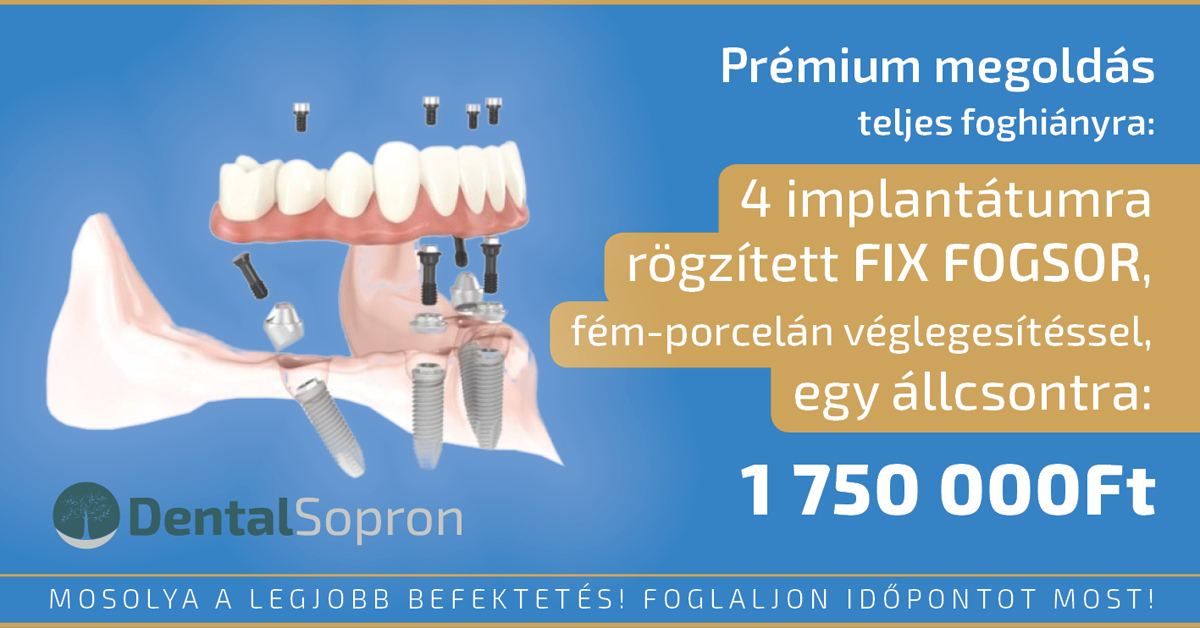 | CT+ 4 implantátum + 3D nyomtatott ideiglenes fogsor elkészítése | 1 140 000 Ft |