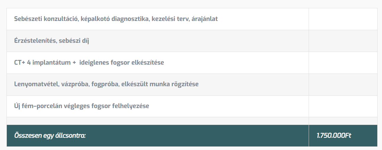 | Összesen egy állcsontra: | 1.750.000Ft |